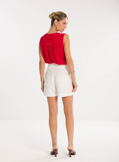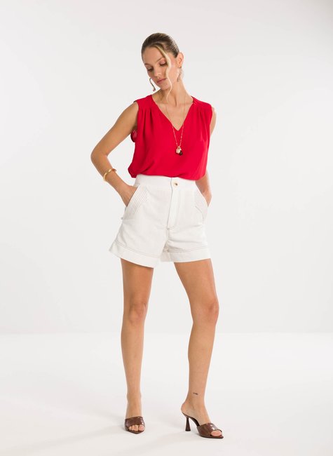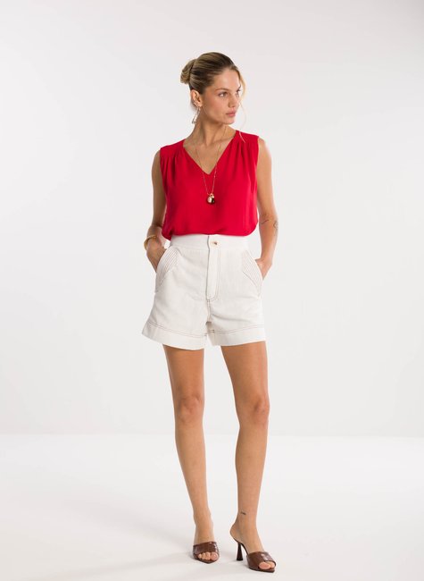 Detalhes bem pensados - Com cintura levemente alta, a peça conta com bolsos frontais marcados por pespontos contrastantes que destacam o design e dão um toque de estilo extra. O acabamento na barra dobrada reforça o ar moderno e despojado, enquanto o fecho frontal com botão delicado garante praticidade e charme. Uma peça coringa que eleva qualquer combinação com elegância.