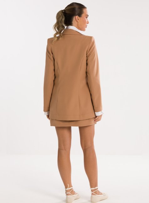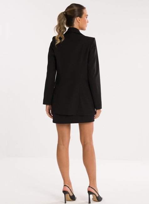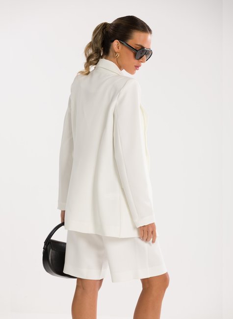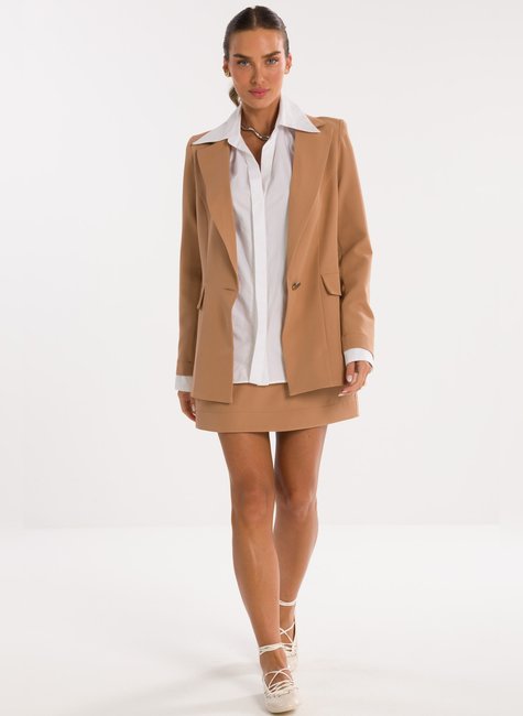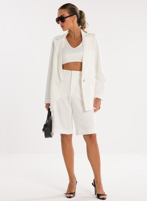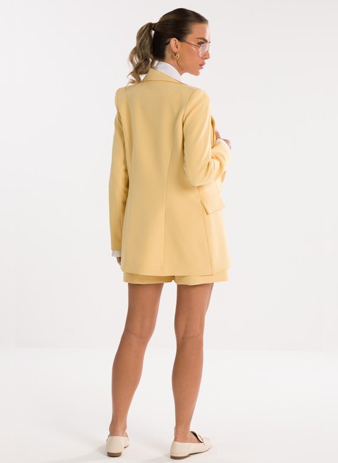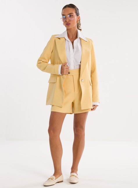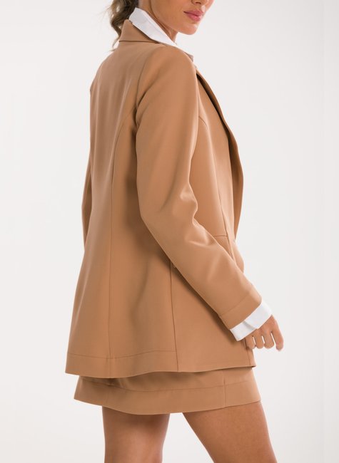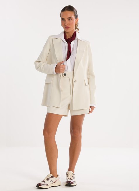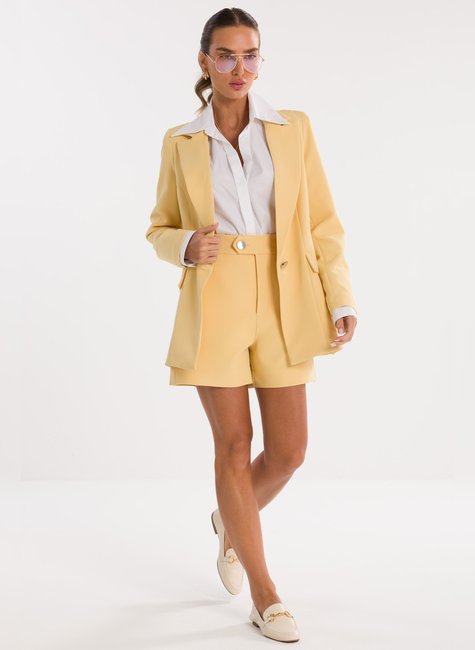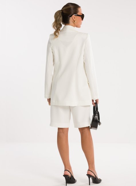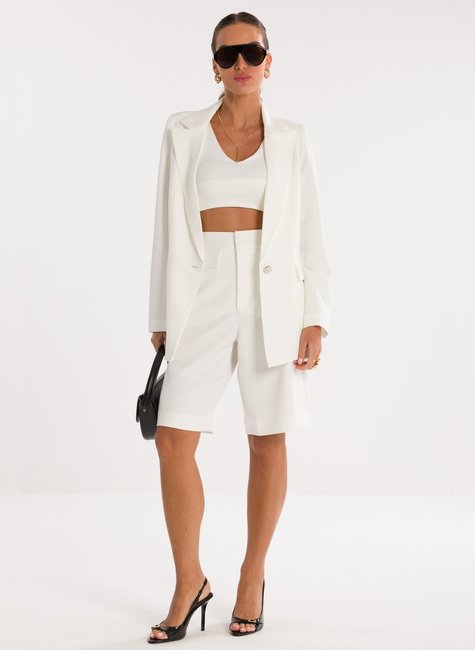 Detalhes Bem Pensados - O design inclui lapela clássica, fechamento frontal por um único botão metálico discreto e bolsos com lapela, reforçando o visual refinado sem exageros