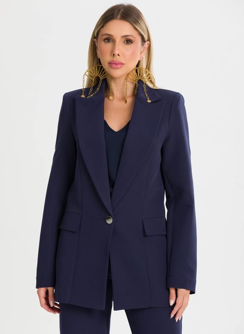 O design apresenta lapela clássica bem definida, que reforça o caráter elegante da alfaiataria, além de fechamento frontal por botão único metálico, discreto e sofisticado, que valoriza o visual clean da peça. Os recortes estratégicos e pences sutis garantem melhor ajuste ao corpo, evidenciando o cuidado na construção da peça e proporcionando um visual alinhado e refinado em todos os ângulos. Um blazer pensado nos detalhes, feito para mulheres que valorizam elegância, estrutura e versatilidade em uma única peça.