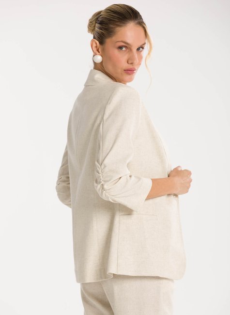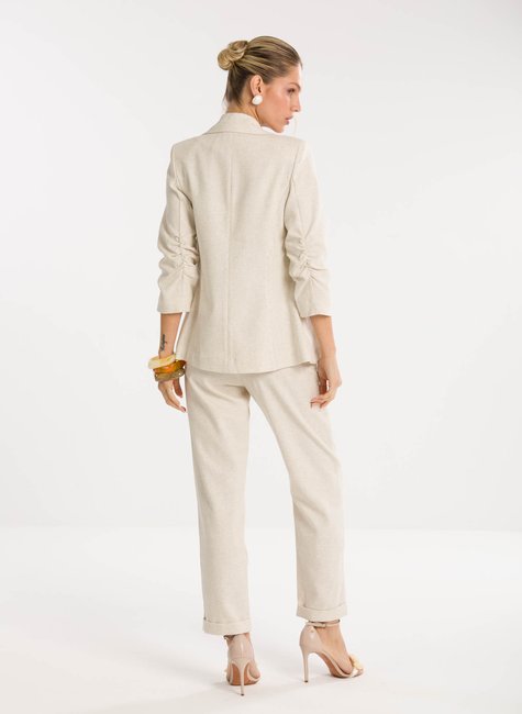 Sobre a Peça - Este blazer é a combinação perfeita entre elegância e conforto. Sua modelagem impecável proporciona um caimento que valoriza qualquer look, garantindo sofisticação sem abrir mão da leveza ao vestir. Detalhes Bem Pensados – Rico em detalhes que fazem toda a diferença, ele conta com franzidos sutis nas mangas e acabamentos cuidadosamente trabalhados, transmitindo exclusividade em cada traço. O tecido leve e de toque macio confere uma sensação agradável durante todo o dia, além de ter aparência refinada que transforma qualquer produção. Uma peça essencial para quem busca versatilidade com requinte, capaz de elevar do office look às produções sociais com naturalidade.