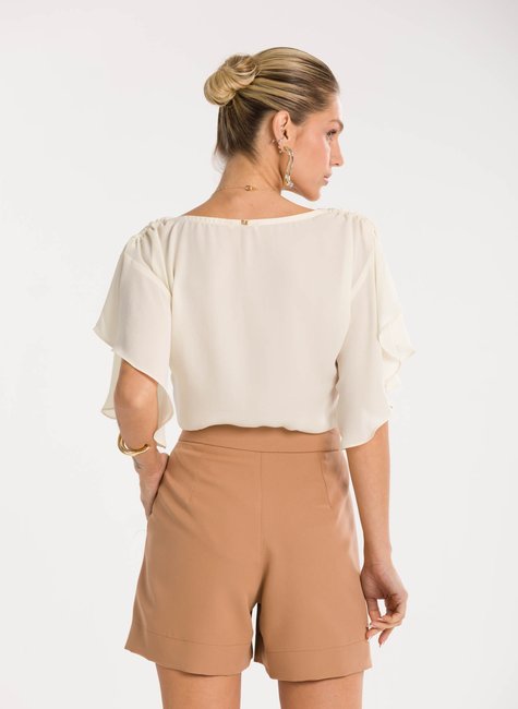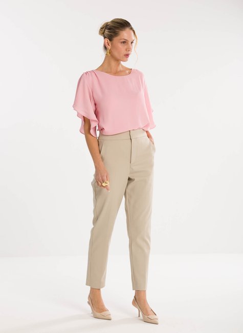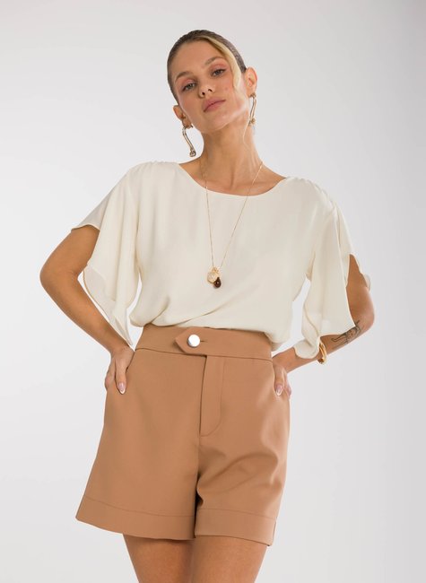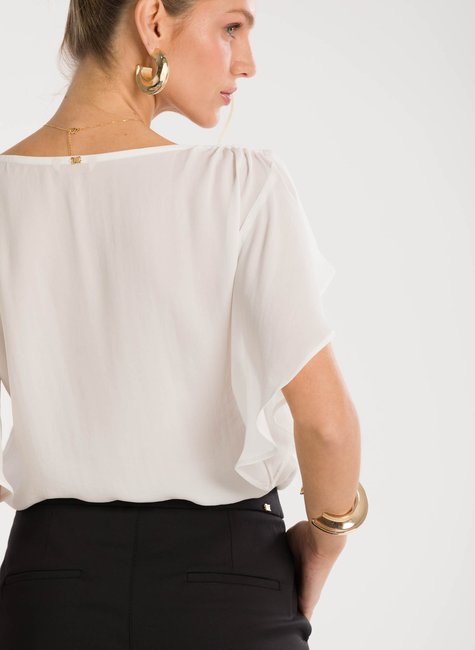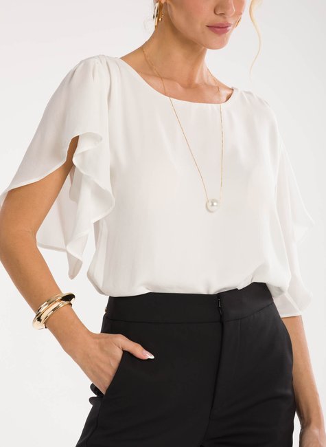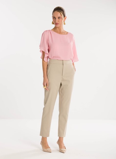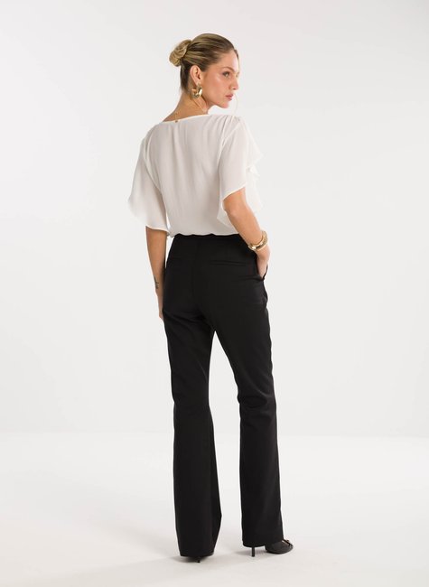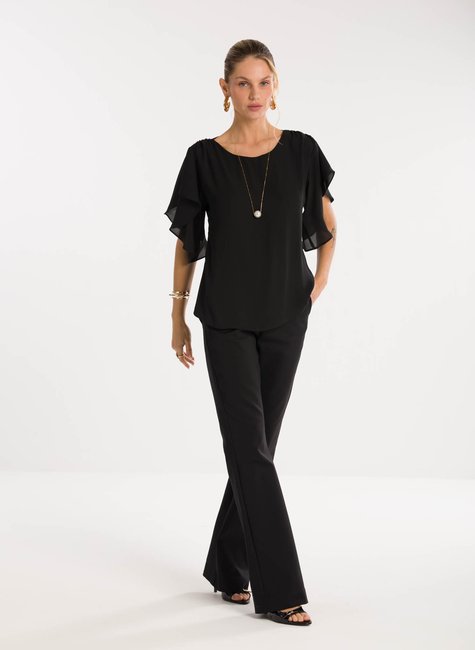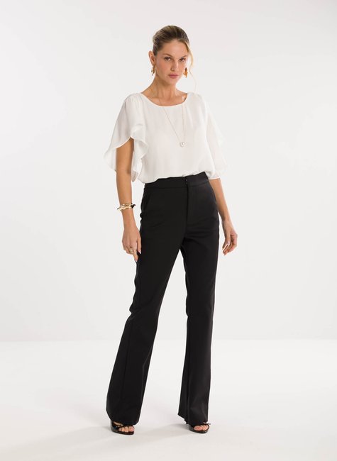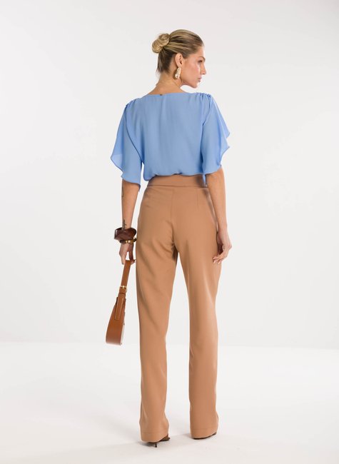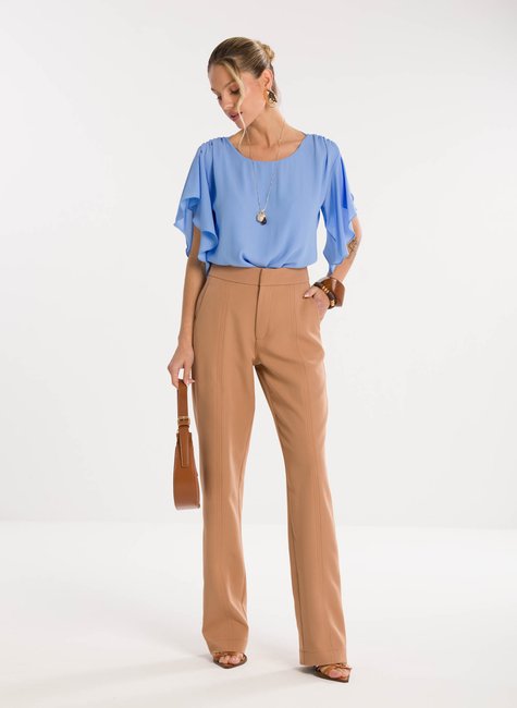 Detalhes Bem Pensados – O decote arredondado equilibra a proposta sofisticada, enquanto o caimento leve valoriza diferentes silhuetas com naturalidade.