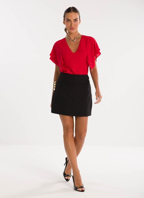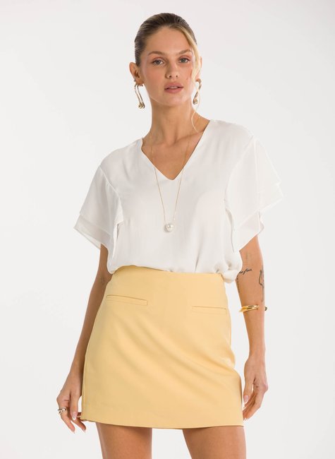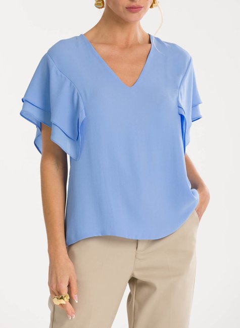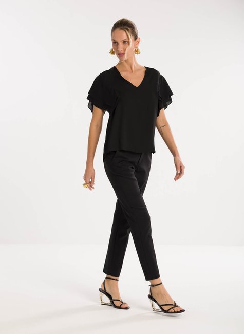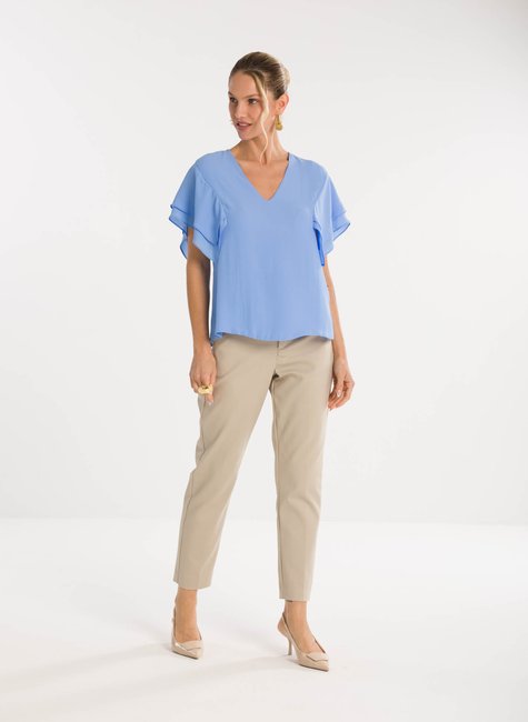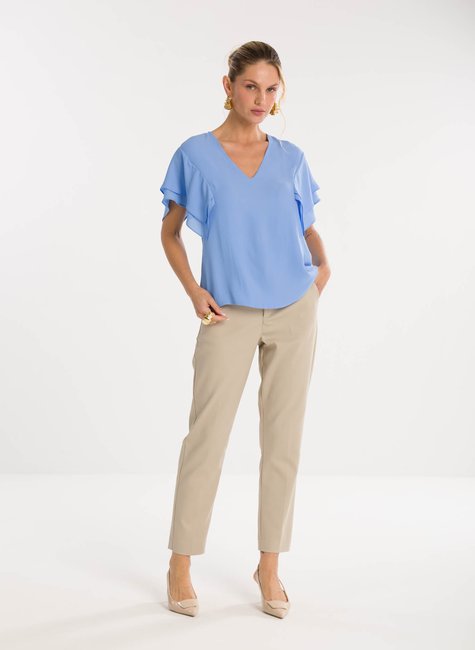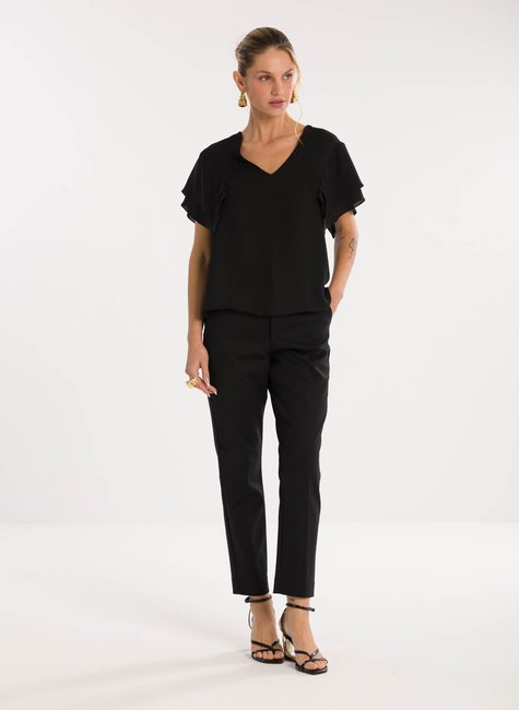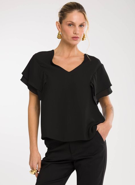 Sobre a peça- Blusa de modelagem solta e elegante, com decote em “V” que alonga a silhueta e valoriza o colo de maneira sofisticada. Uma proposta moderna que une conforto e estilo. Detalhes bem pensados - As mangas em estilo lenço trazem leveza e movimento ao visual, acrescentando fluidez e delicadeza ao design. Versátil, a peça transita com naturalidade entre produções para o dia a dia ou ocasiões especiais.