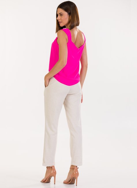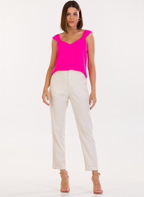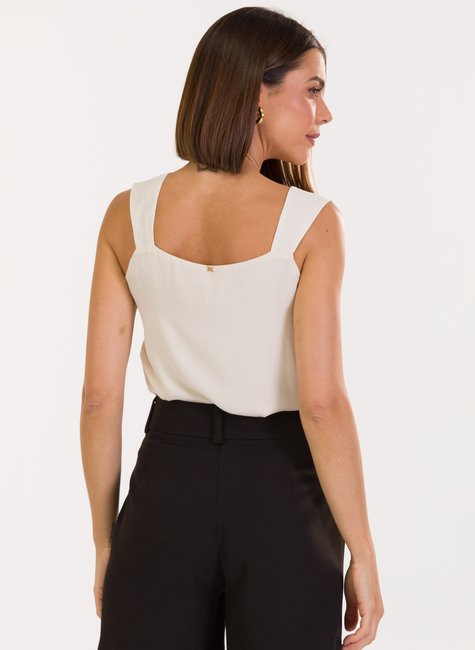 A modelagem regata da blusa Grace é perfeita para proporcionar liberdade de movimento, permitindo que você se sinta à vontade durante todo o dia. As alças largas oferecem suporte adicional e evitam que a blusa escorregue dos ombros, garantindo o ajuste perfeito. O toque especial desta blusa é o nó presente na frente, que adiciona um charme único e elegante à peça. O nó cria um detalhe sutil, mas marcante, que evidencia a delicadeza e o estilo do seu look. Com a Blusa Regata De Alfaiataria Feminina Grace, você estará sempre radiante e confortável, ap