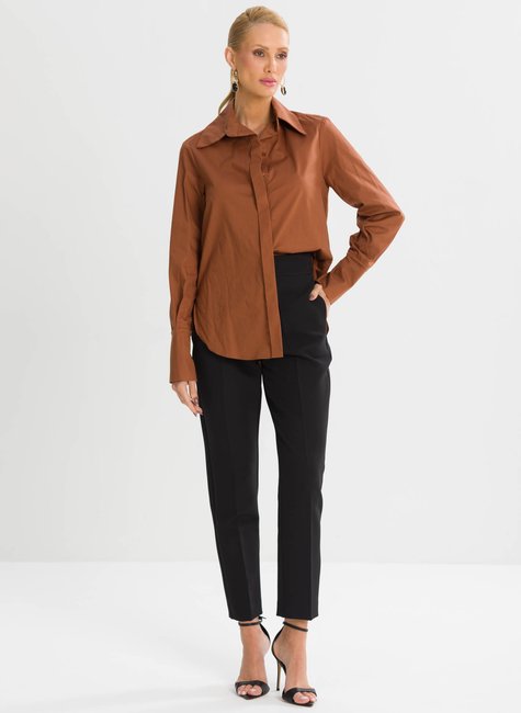 A Calça Ajustada Rebeca traduz a sofisticação da alfaiataria contemporânea com um caimento preciso e elegante. Sua modelagem ajustada valoriza a silhueta de forma natural, enquanto o vinco de passadoria frontal cria linhas verticais que alongam visualmente o corpo e conferem um acabamento impecável à peça. Confeccionada em tecido estruturado, mantém a forma ao longo do uso, oferecendo conforto e elegância em todas as ocasiões. Uma peça versátil que transita com naturalidade entre o ambiente de trabalho, eventos sociais ou produções casuais com um toque elegante.