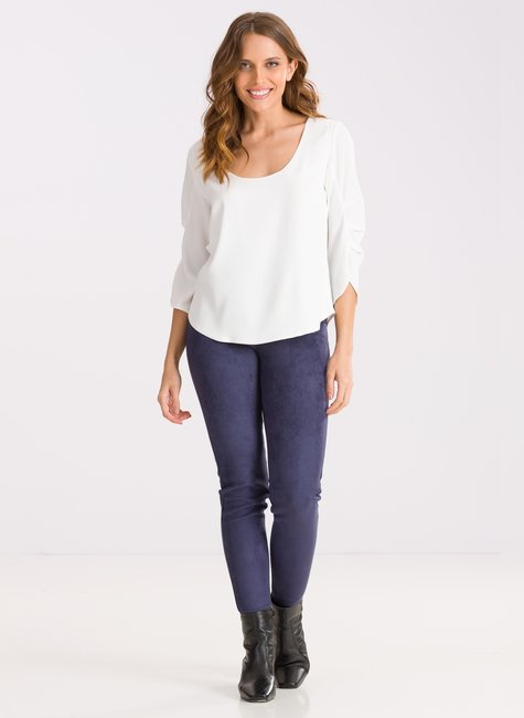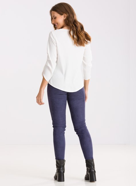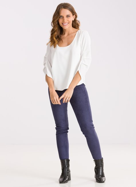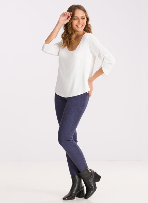 A Calça Fabíola com sua textura em suede e modelagem skinny, essa calça é a peça chave que faltava no seu guarda roupa.