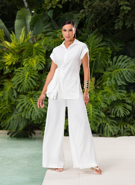 Sobre a peça - Calça pantalona de cintura alta com modelagem ampla e caimento leve, que valoriza a silhueta e transmite sofisticação em qualquer ocasião. O corte fluido garante elegância sem abrir mão do conforto.