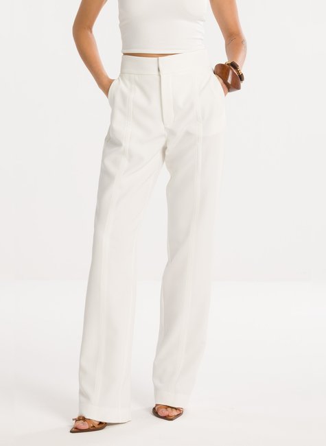 Sobre a Peça - A Calça Reta Rebeca apresenta modelagem de cintura alta com caimento reto, que valoriza a silhueta de forma elegante e alongada. Detalhes Bem Pensados - Possui recortes verticais que percorrem toda a extensão da peça, criando um efeito de alongamento visual. O cós é liso e estruturado, com fechamento frontal embutido, garantindo um acabamento limpo e sofisticado. Confeccionada em tecido encorpado e maleável, oferece conforto e versatilidade para composições formais ou casuais.
