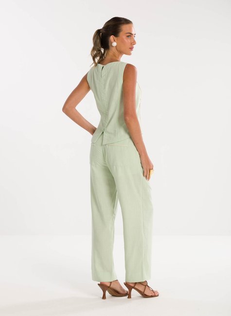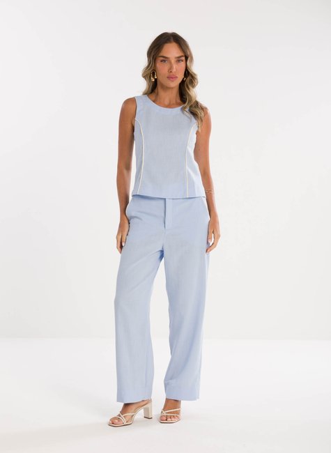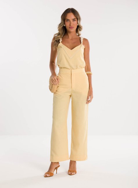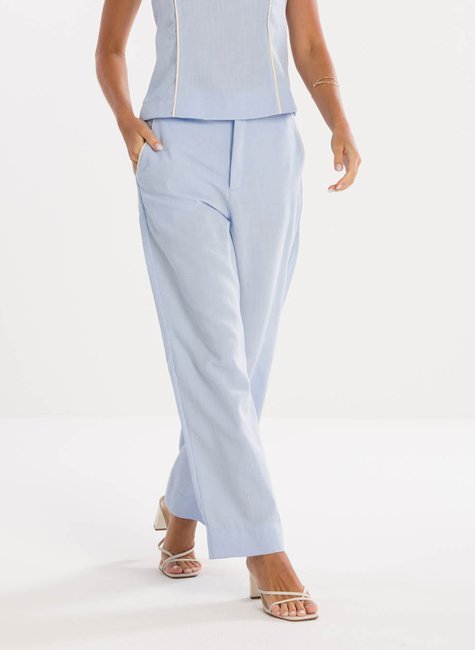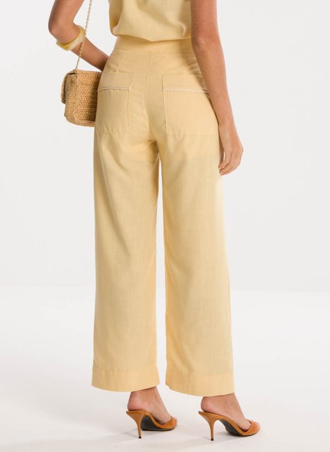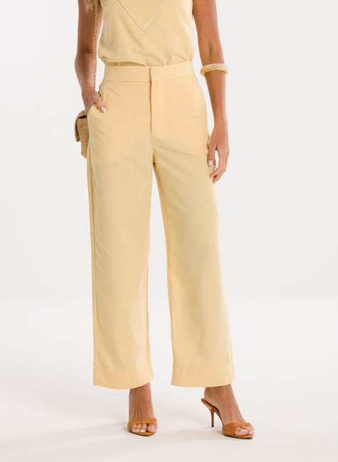 Detalhes Bem Pensados - No design, a calça apresenta bolsos funcionais que somam estilo e utilidade ao look. O cós alto garante um caimento elegante ao corpo, valorizando a silhueta de forma equilibrada. A barra pantacourt confere movimento e modernidade à composição