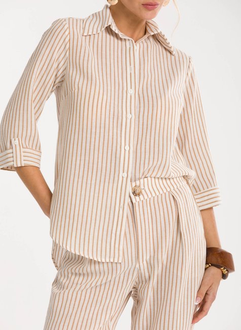 Sobre a Peça - A Camisa Kamili oferece um caimento leve e confortável, garantindo uma vestibilidade solta que valoriza diferentes tipos de corpo e traz liberdade aos movimentos. Sua modelagem clássica com botões frontais e gola estruturada torna a peça versátil para produções elegantes ou despojadas. Detalhes Bem Pensados - O tecido listrado, de qualidade diferenciada, confere um toque sofisticado e moderno, ao mesmo tempo em que é leve e agradável ao vestir. É a escolha ideal para quem busca uma peça prática e estilosa que transita facilmente do trabalho a momentos casuais