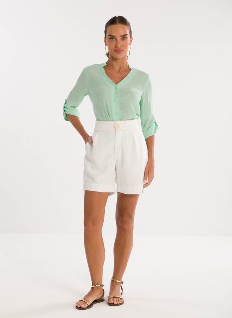 Apresenta decote em V com gola diferenciada, fechamento frontal por botões e mangas 3/4, garantindo praticidade e modernidade. Confeccionada em tecido de alta qualidade, proporciona frescor, conforto e caimento impecável. Uma peça versátil que transita com naturalidade entre o ambiente de trabalho, eventos sociais ou produções casuais com um toque elegante.