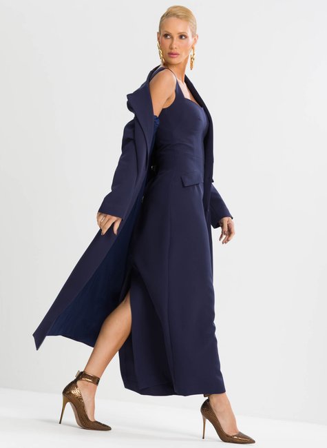 Alfaiataria estruturada com tecido encorpado que mantém a forma do casaco, garantindo um visual alinhado ao longo do uso. Com lapelas que proporcionam elegância clássica e de forma sofisticada. Vista embutida fechamento discreto que valoriza a estética clean e moderna da peça. Recortes estratégicos e pences sutis com modelagem pensada para acompanhar as linhas do corpo com precisão, sem marcar excessivamente. Comprimento longo com fenda posterior, facilita os movimentos e adiciona leveza ao caminhar, sem perder a formalidade. Totalmente forrado com acabamento interno refinado que eleva o padrão da peça e oferece maior conforto térmico.