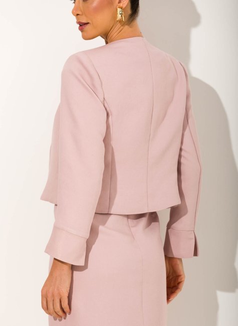 O design sem gola transmite modernidade e leveza, enquanto o recorte frontal delicadamente estruturado confere movimento e sofisticação. Um aliado perfeito para complementar vestidos ou composições com saia e blusa, garantindo elegância em ocasiões formais ou em momentos que pedem um toque de distinção. Uma peça versátil que transita com naturalidade entre o ambiente de trabalho, eventos sociais ou produções casuais com um toque elegante.