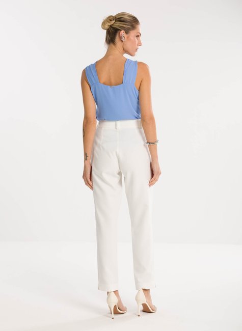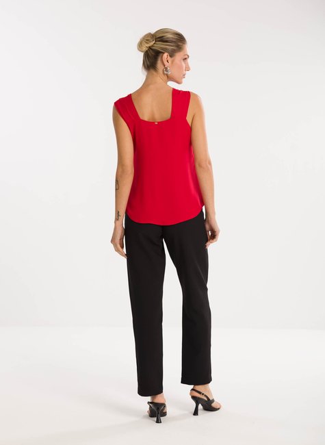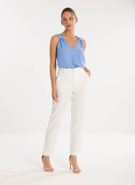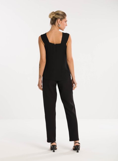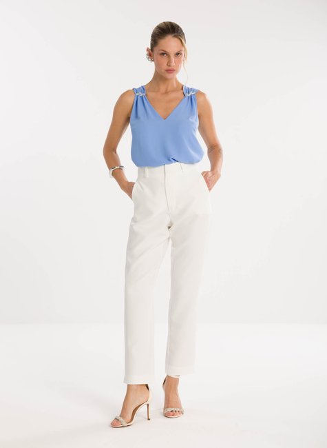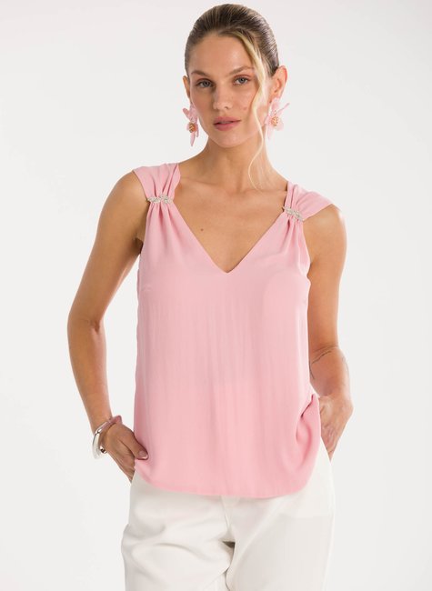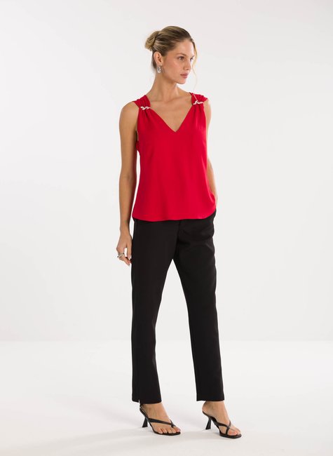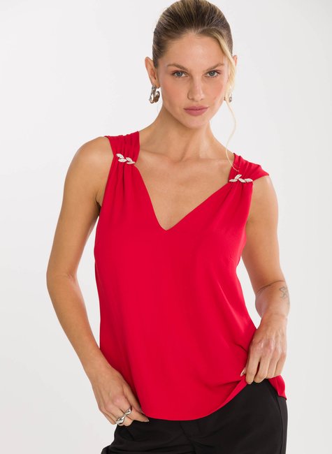 Detalhes bem pensados - As alças são adornadas por aviamentos delicados que trazem brilho sutil e sofisticação ao design. O caimento fluido garante conforto e versatilidade, tornando a peça ideal tanto para composições formais quanto casuais.