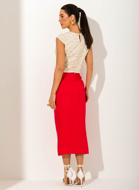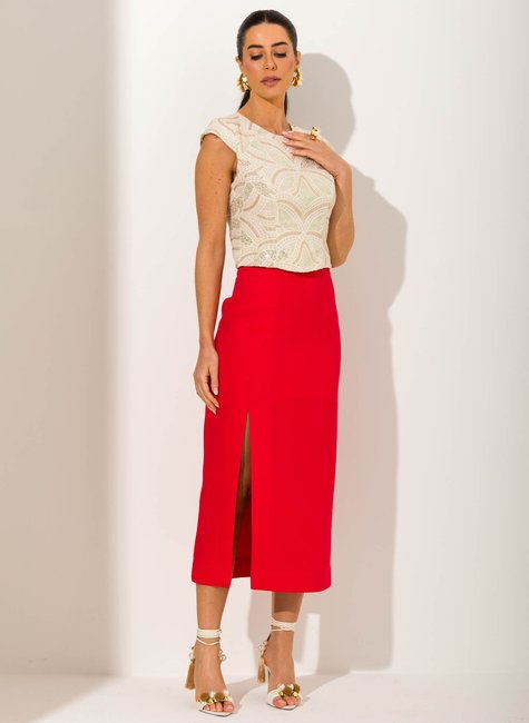 O destaque fica por conta da fenda frontal, que além de proporcionar movimento e leveza, adiciona sensualidade na medida certa. Versátil e cheia de estilo, a saia midi Letizia transita com naturalidade entre ocasiões formais e produções modernas para o dia a dia, sempre com um ar elegante e distinto.