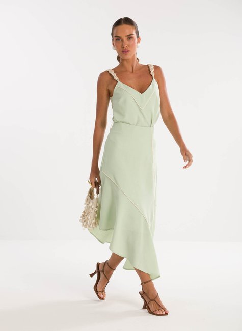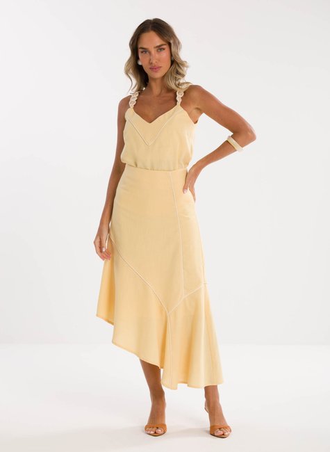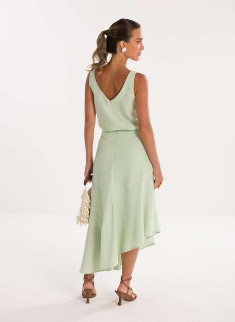 Detalhes Bem Pensados – Entrega um ótimo frescor e aparência refinada. Mesmo sem vestir, transmite a sensação de qualidade e bem-estar visual. A cintura alta alonga a silhueta de forma natural e favorece combinações elegantes com diferentes peças. O caimento da saia é marcado por linhas delicadas e recortes sutis que criam um balanço encantador ao andar, ideal para quem busca uma peça com identidade e charme sem exageros.