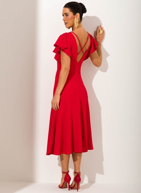 O vestido costas abertas Monique é uma criação que une elegância e sensualidade na medida certa. Sua modelagem acinturada com decote em “V” alonga a silhueta e destaca o colo de forma refinada, enquanto as mangas em camadas leves trazem movimento e delicadeza ao visual. Um design pensado para quem busca uma peça impactante, sofisticada e ao mesmo tempo feminina.