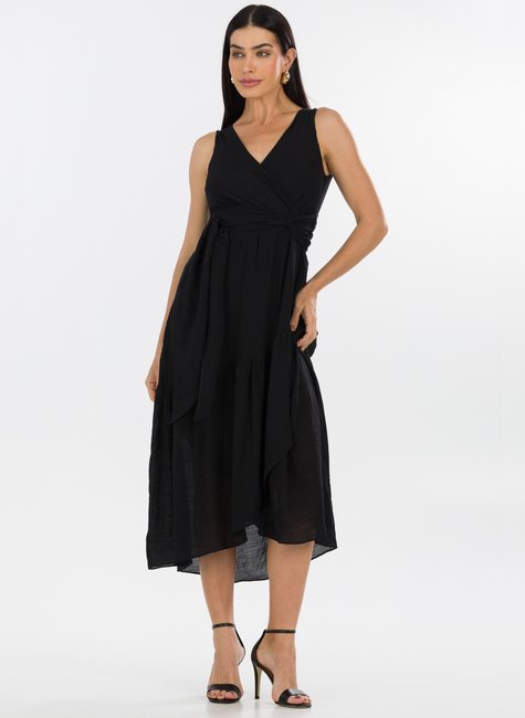 Com um acabamento único, o vestido Elsa apresenta detalhes pensados para valorizar a beleza feminina. As alças largas permitem o uso confortável com sutiã, enquanto o decote em V realça o colo de forma sutil e elegante. O cinto confeccionado no mesmo tecido do vestido permite ajustá-lo perfeitamente à sua silhueta, proporcionando um ajuste personalizado e sofisticado. Os babados ao longo da saia adicionam um toque romântico e gracioso, conferindo movimento e charme a cada passo. A abertura frontal suave complementa o design, trazendo um toque de sensualidade na medida certa.