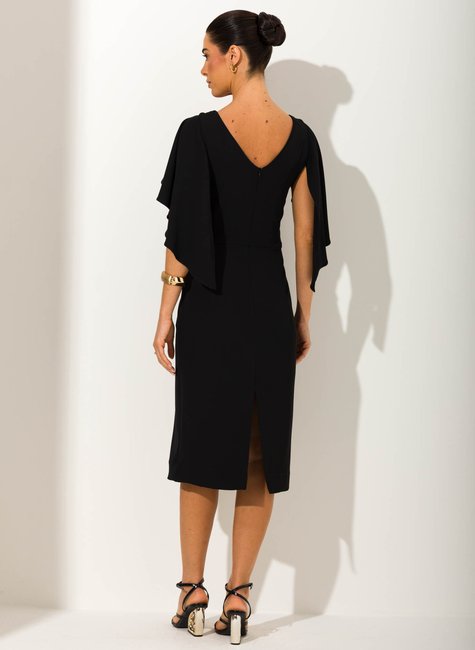 O grande diferencial dessa peça está em suas mangas removíveis, que permitem transformar completamente o visual conforme a ocasião. Quando usadas, criam um efeito fluido e sofisticado, adicionando movimento e imponência ao look. Sem as mangas, o vestido ganha uma proposta mais clean e moderna, mantendo a sofisticação em evidência. O decote delicado, o corte ajustado ao corpo e a fenda discreta nas costas reforçam a feminilidade da peça, enquanto os acabamentos bem trabalhados revelam seu alto padrão de qualidade. Uma peça rica em detalhes, chique e versátil, que oferece duas possibilidades em um único modelo, tornando-se um verdadeiro investimento no guarda-roupa.