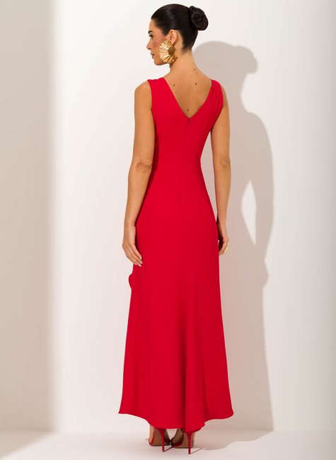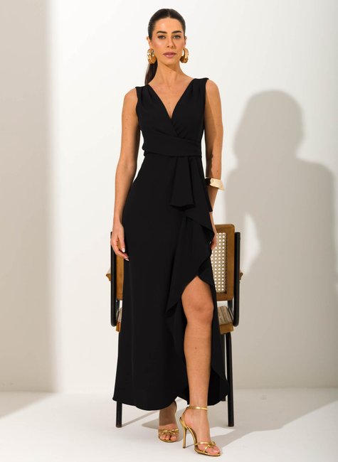 Sobre a peça O Vestido Longo Monique é uma peça que traduz sofisticação e feminilidade em cada detalhe. Seu design alongado valoriza a silhueta de forma elegante, enquanto o decote transpassado cria uma composição clássica e atemporal. Ideal para ocasiões especiais, é uma escolha que transmite presença e charme com naturalidade. Detalhes bem pensados O grande diferencial está na fluidez do tecido, que acompanha os movimentos do corpo com leveza e proporciona um caimento impecável. O detalhe drapeado na cintura com sobreposição de camadas adiciona um toque de requinte, criando volume e movimento na medida certa. A modelagem sem mangas deixa os ombros em evidência, reforçando a sofisticação da peça. Tudo foi pensado para oferecer um visual impactante e versátil, perfeito para quem deseja se destacar em eventos formais ou celebrações marcantes.